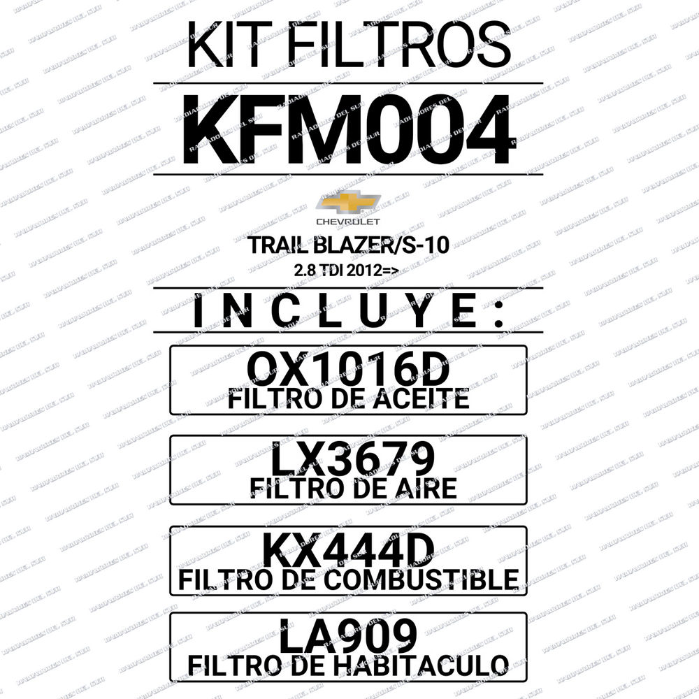 KIT FILTROS MAHLE CHEVROLET TRAILBLAZER 2.8 16V